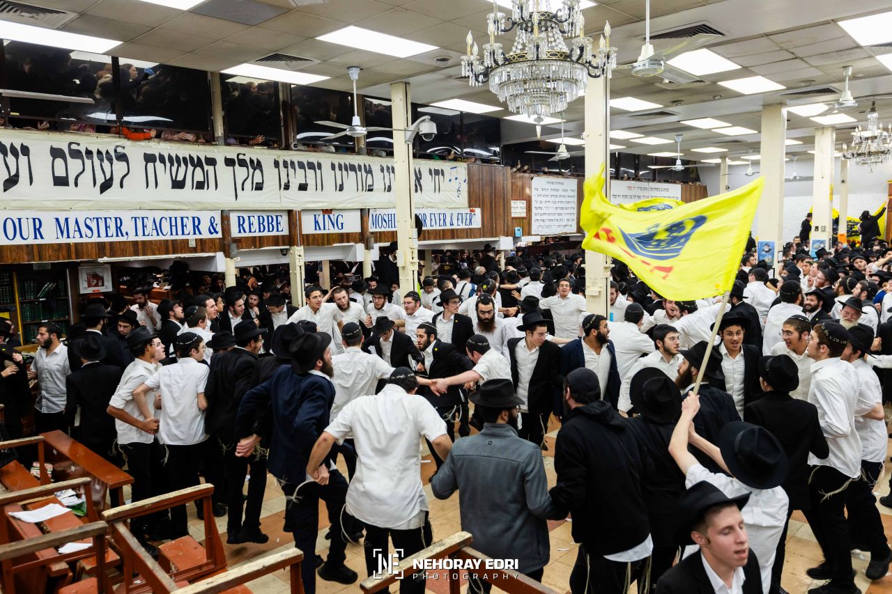 השנה, עקב הגשמים הריקודים התקיימו בתוך בית משיח - 770 ולא ברחובות קראון הייטס כנהוג.