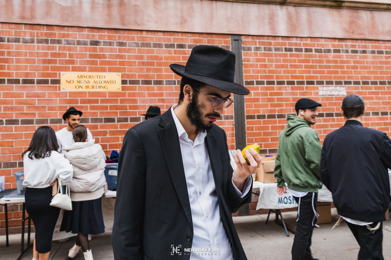 ערב סוכות, ושכונת קראון הייטס לבשה חג. המוני אורחים ותושבי השכונה מתרוצצים בינות לדוכני ארבעת המינים, בודקים את טיב האתרגים. אחרים מודדים כיפות יחי אדוננו להתחדש בחג.