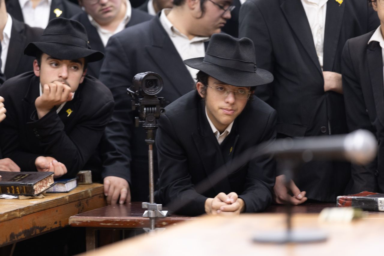 אתמול (שלישי) התקיימה יחידות כללית בחלקו המערבי של בית הכנסת. מעזרת הנשים למעלה השתתפו גם כן נשים, ובקהל עצמו - חוץ מהאורחים - עמדו גם חתנים ונערי בר מצווה.