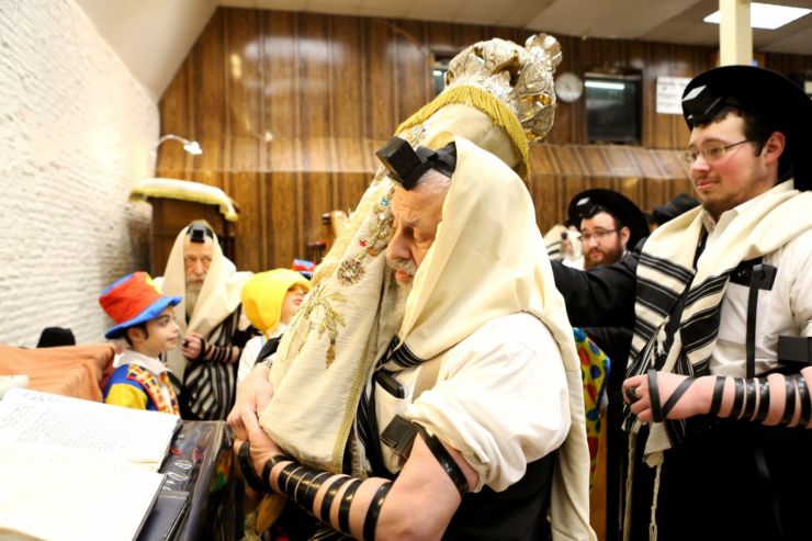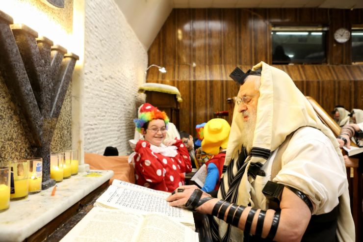 במהלך היום היה ניתן לראות מאות משפחות מאנ"ש צועדים ברחובות קראון הייטס - שכונת המלך המשיח, כשהם מחופשים, ועושים את דרכם לשמוע את קריאת המגילה.