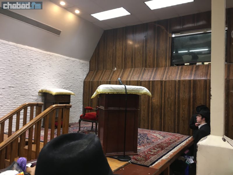 תיכף לאחרי החלוקה, סידרו על בימת כ"ק אדמו"ר מלך המשיח שליט"א את הסטנדר השני עם משטח רחב עבור קריאת המגילה – כרגיל, ומעליו האירה מנורה, (השנה היה צורך להעמידה על "באַקס").