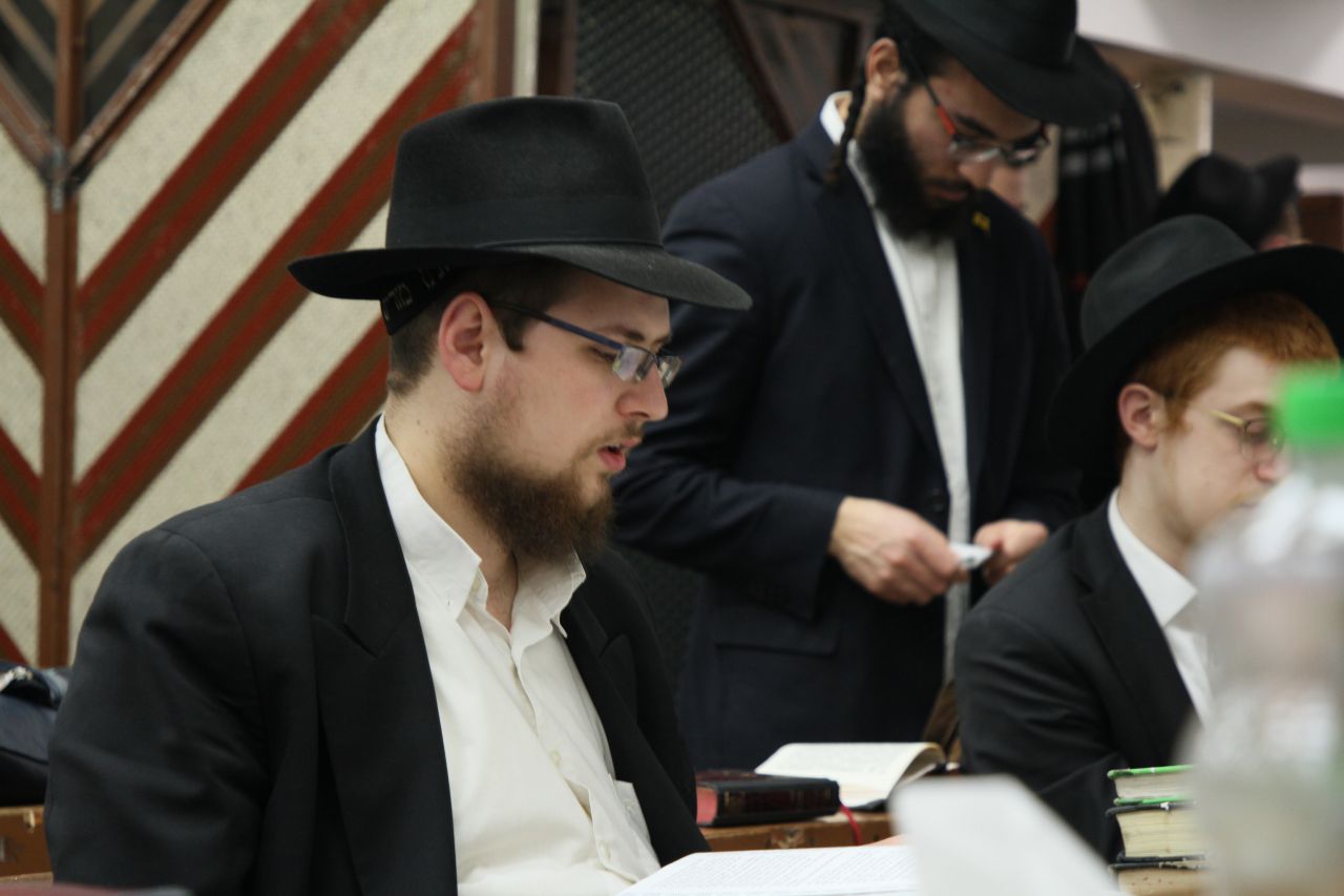 אחרי תפילת מנחה התיישבו תמימים רבים לשיעור דבר מלכות הקבוע בארגון התמים מענדי הלל, כאשר הכיבוד היום היה מגשי פיצה.