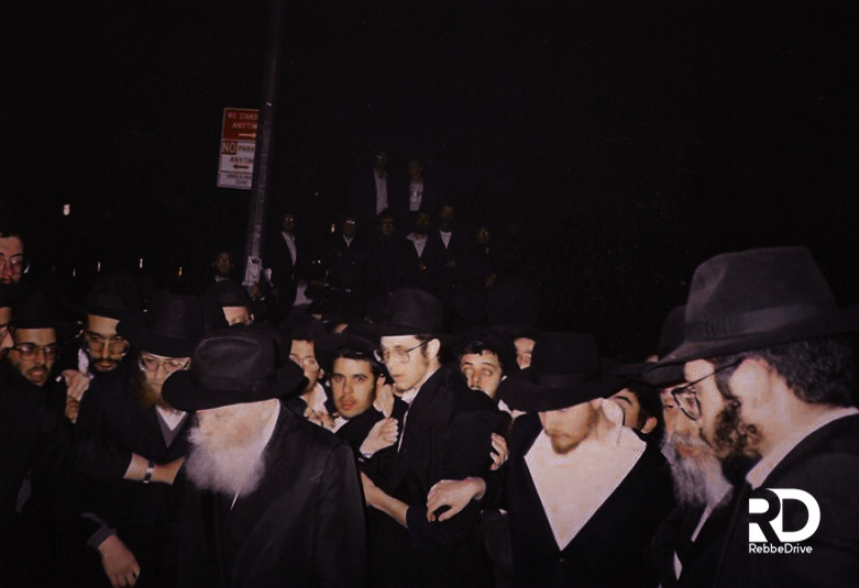 [כ"ק אדמו"ר שליט"א ליווה את הרב אליהו שליט"א, ובהמתינו לנסיעת המכונית, עודד בידו הק' את הנאספים שיחיו שניגנו "כי בשמחה תצאו ובשלום תובלון"].