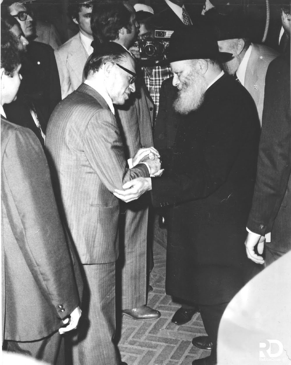 הרב שניאורסון הוא אישיות חשובה בישראל, כולנו מעריצים אותו, וכולנו מקבלים את דעתו ועצותיו, הוא אהוב מאוד לבית ישראל, הוא ביטא את רגשיו העמוקים ואהבתו לבנינו, ברכותיו מאוד חשובות אצלי, ואני תפלה שהם יחזקוני בפגישתי החשובה עם נשיא ארצוה"ב, מר קארטר.