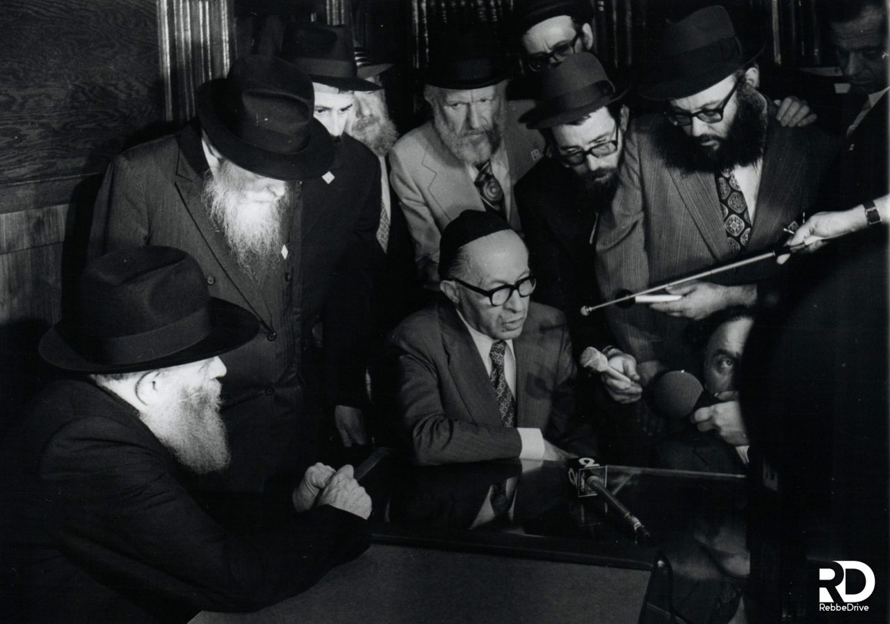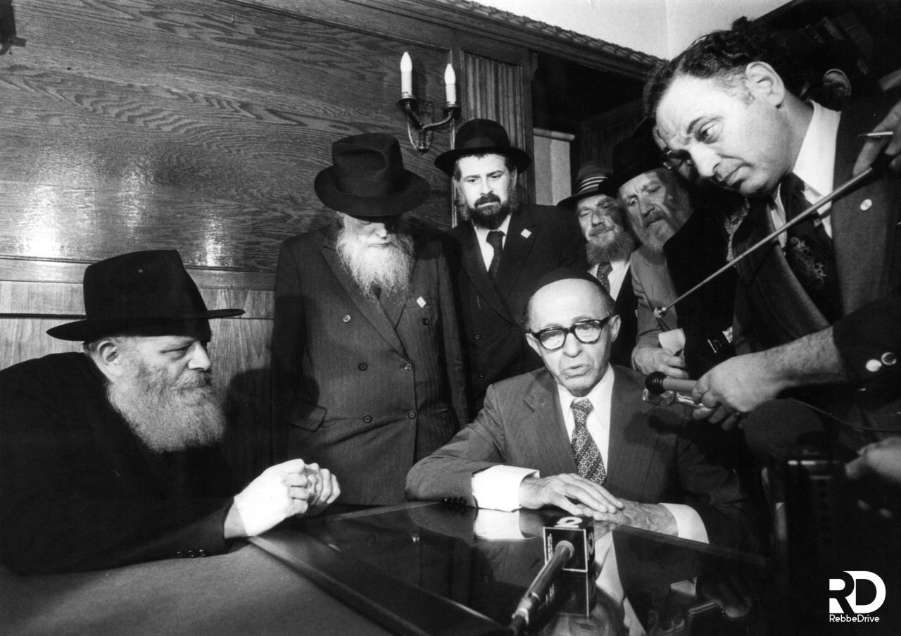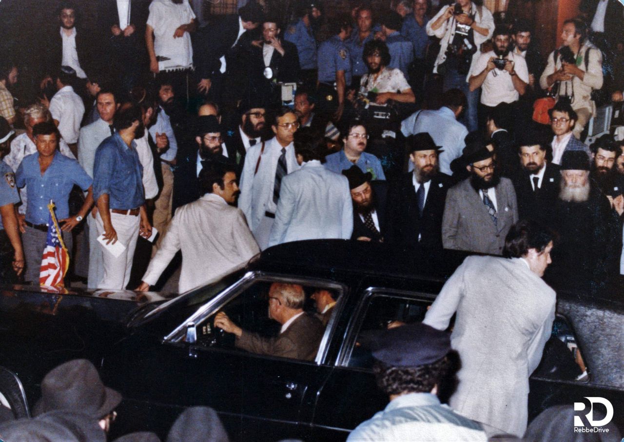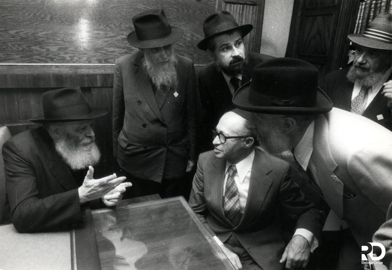 ביום ג' מנחם-אב תשל"ז (18.07.1977), הגיע ל-770 בני יורק, ראש הממשלה, שאז נבחר, מר מנחם בגין, ל"יחידות" לבקש את ברכתו של הרבי שליט"א מלך המשיח. לפני הכנסו ל-770 הכריז לציבור העיתונאים, כי הגיע לבקש את ברכתו של מורנו ורבינו, שעתו היא החשובה לממשלת ישראל, לקראת הביקור והפגישה עם נשיא ארה"ב. בצאתו חזר על הכרזות אלו ולאחר מכן, הרבי שליט"א מלך המשיח, בצעד נדיר ומיוחד, דיבר בפני עשרות העיתונאים שעמדו במקום בשפה האנגלית.