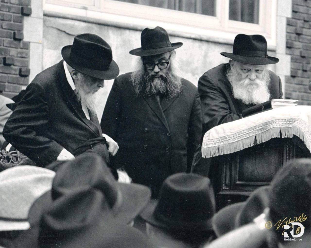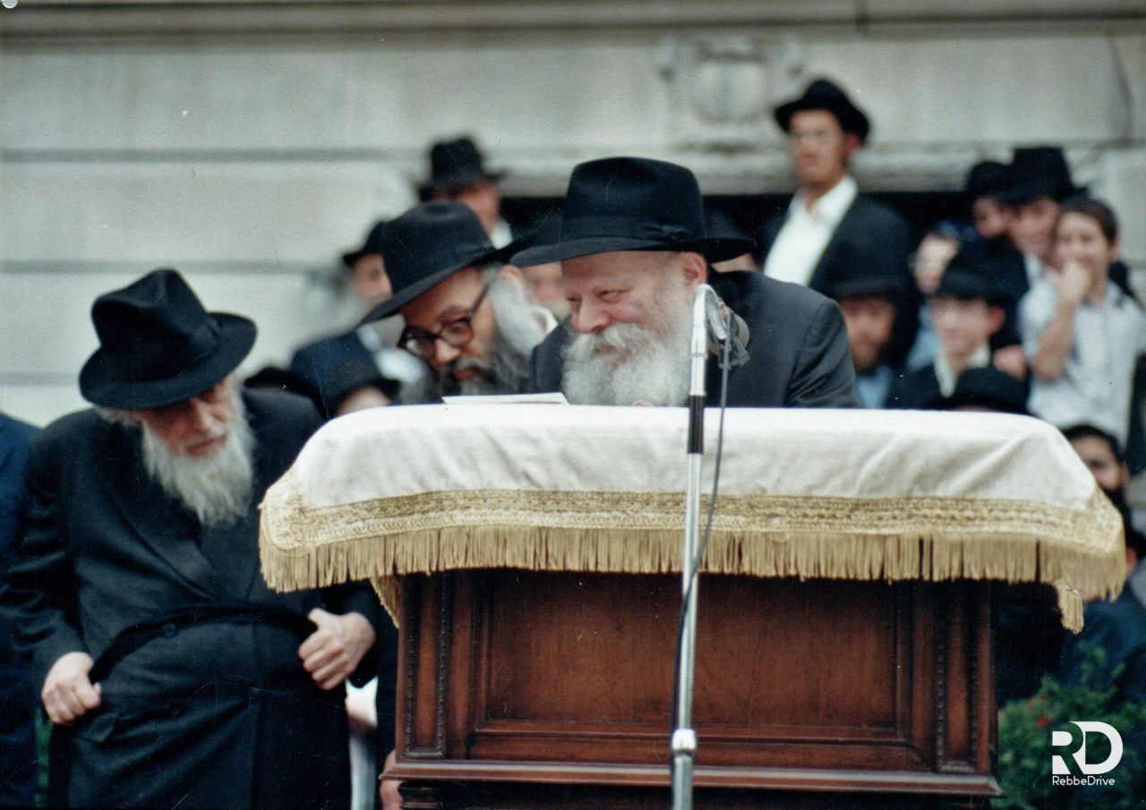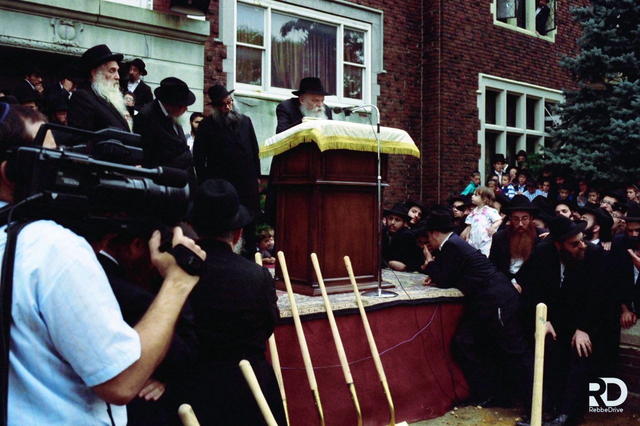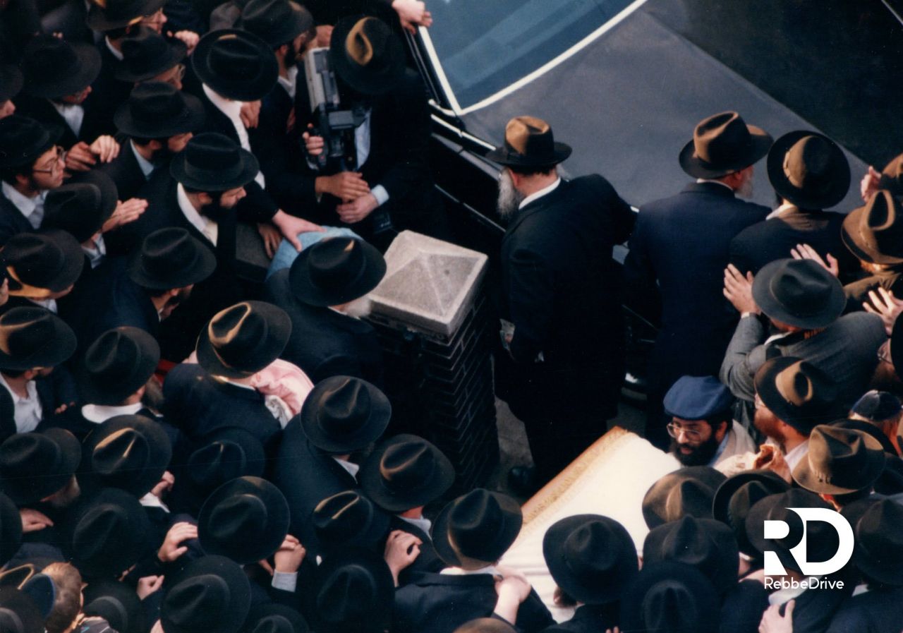 [ציוה למר דוד שיחי' צ'ייס ולרש"ג שיחי' שיאמרו כמה מילים. ולאח"ז הלך למקום הנחת האבן היסוד, ובאת חפירה חפר בעפר, לקח בידיו הק' את ה״אבן יסוד", הניחה במקום החפירה וכיסה בעפר.
