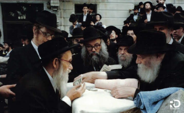 כ״ק אדמו״ר שליט״א חילק לכוא״א שטר א׳ של דולר. ע״מ לתתו לצדקה].