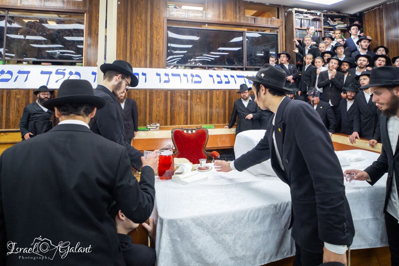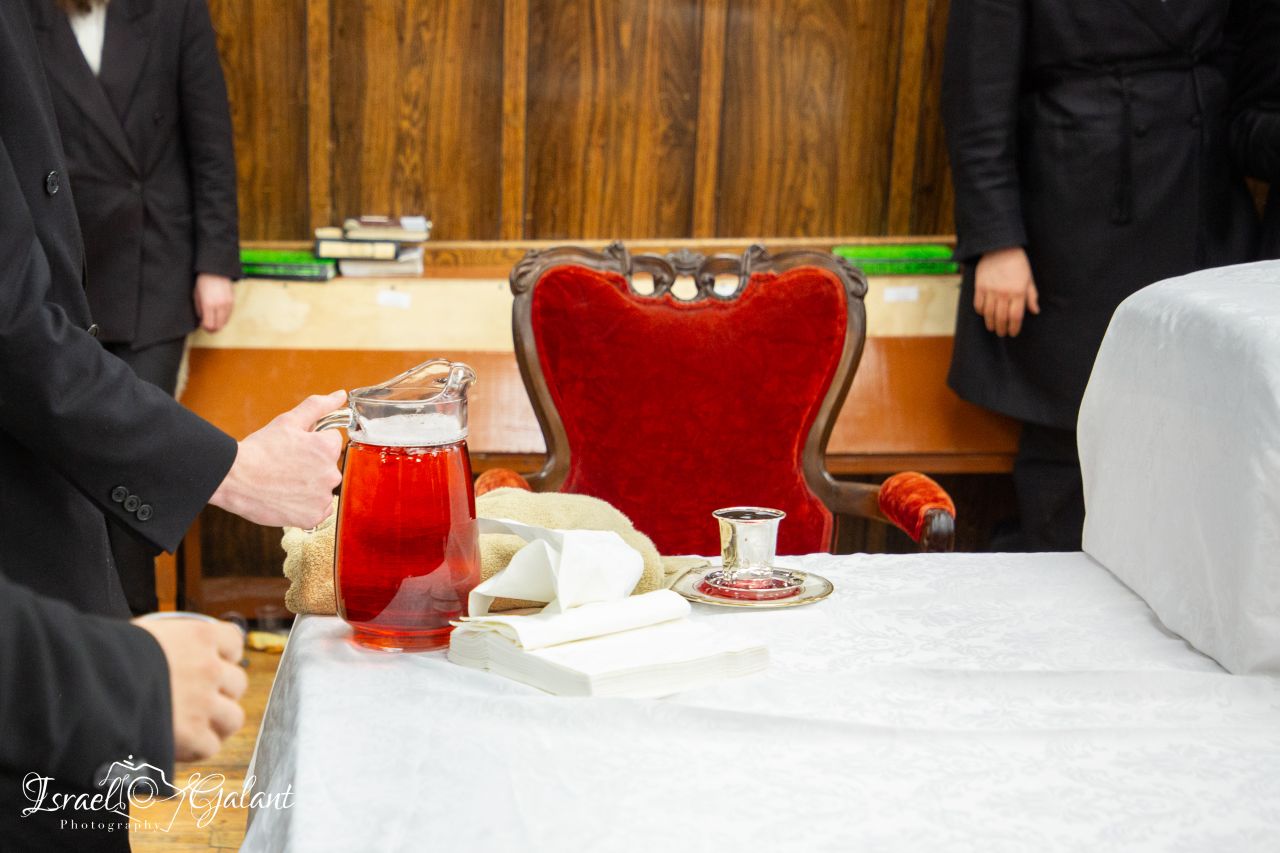 גם כעת, מוצאי ראש השנה תשפ"ה, עברו אלפי חסידים לקבל "כוס של ברכה" ממלך המשיח. לצד השולחן הטהור עמדו אלפי בחורי חמד שניגנו בקול רם למול העוברים.